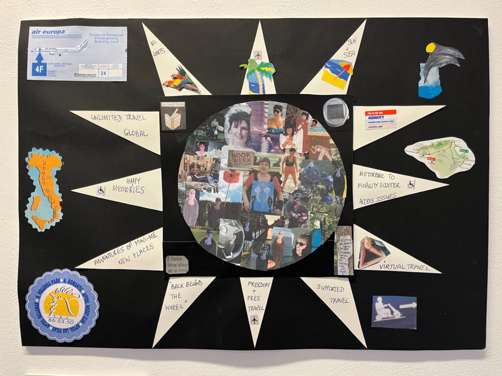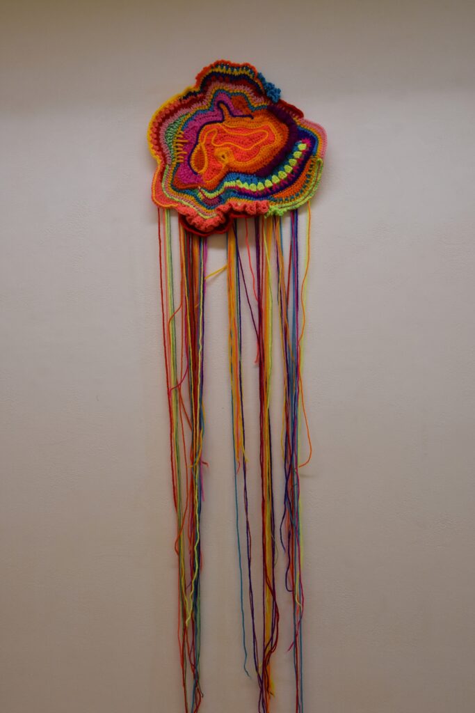 The artworks tell personal stories depicting journeys in art and life. Artworks are presented in mixed mediums including; drawing, painting, ceramics, sewn, stitched, woven and knitted textiles, digital printing, jewellery, marbling, paper-maché, collage, photography and relief modelling.