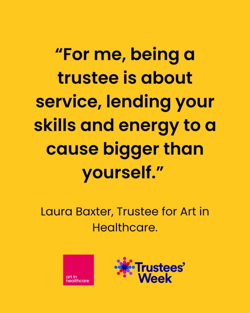 Lauren: “Becoming a trustee for Art in Healthcare has been a deeply rewarding and eye-opening experience. One of the biggest things I’ve learned about myself is how much I value collaboration. The staff of the organisation and fellow trustees all bring unique perspectives that shape how art can genuinely improve wellbeing. It has embedded for me that creativity and compassion can coexist powerfully when guided by a shared purpose.