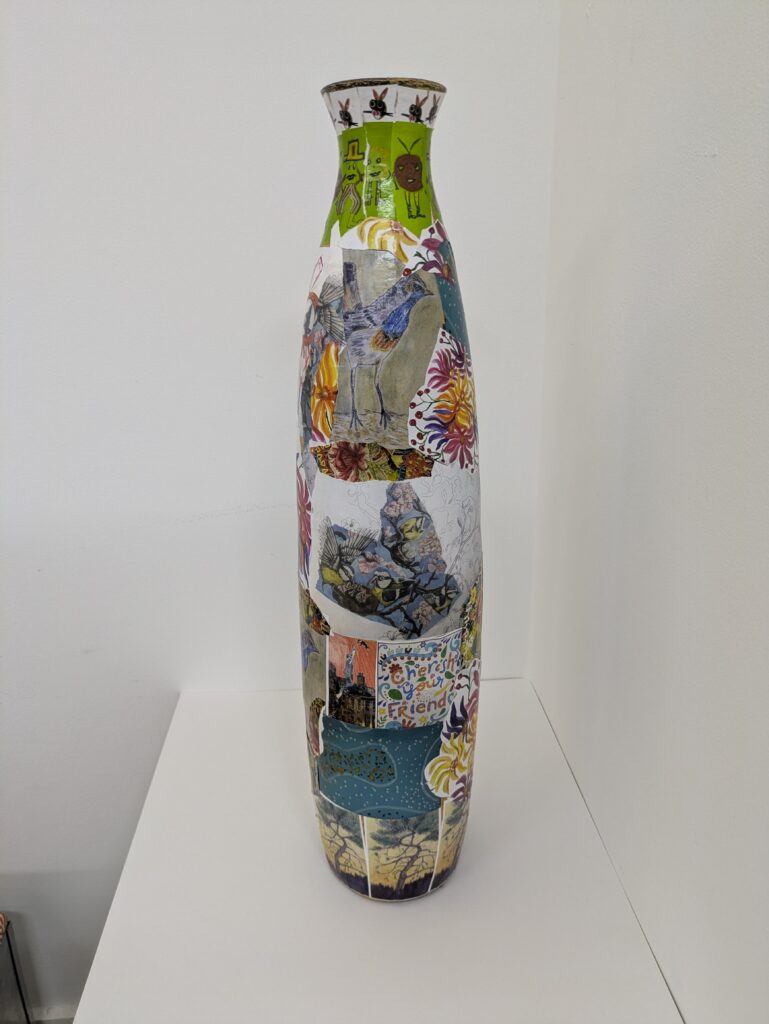 The vase represents all the participants from the Salisbury Centre group. Works were selected, photographed and printed ready to rip, cut and stick onto the vase.